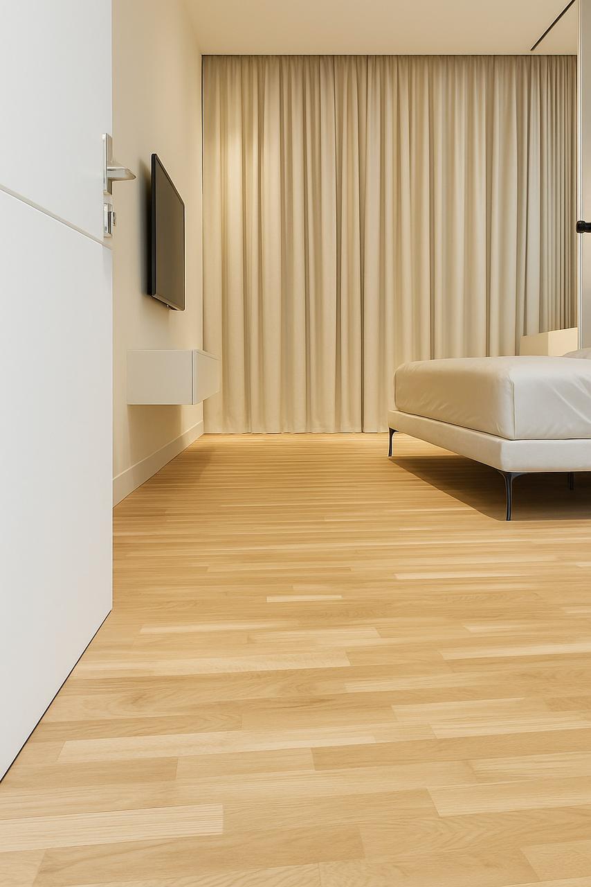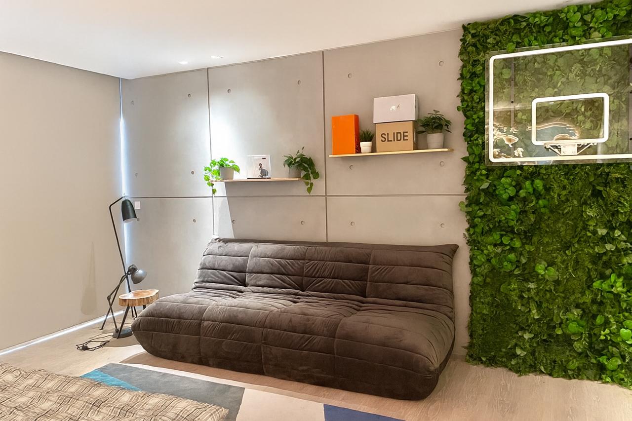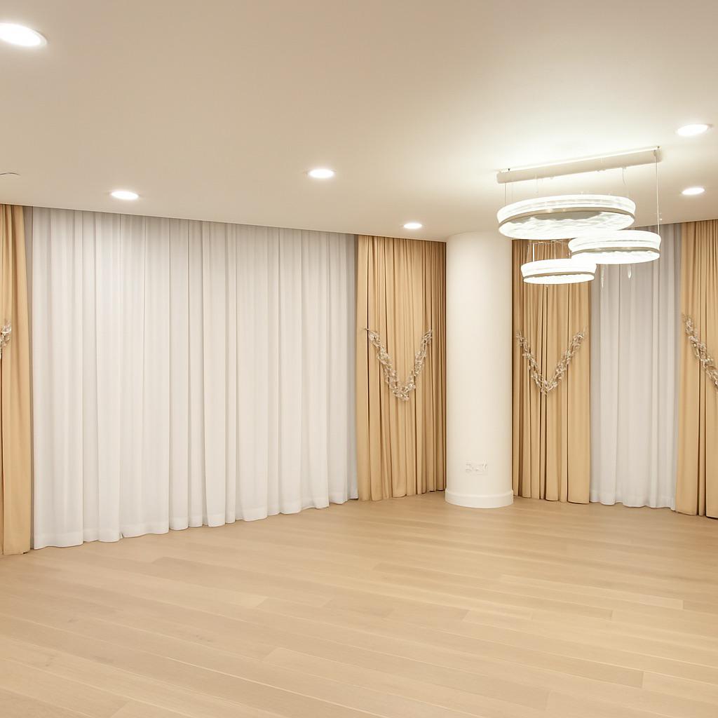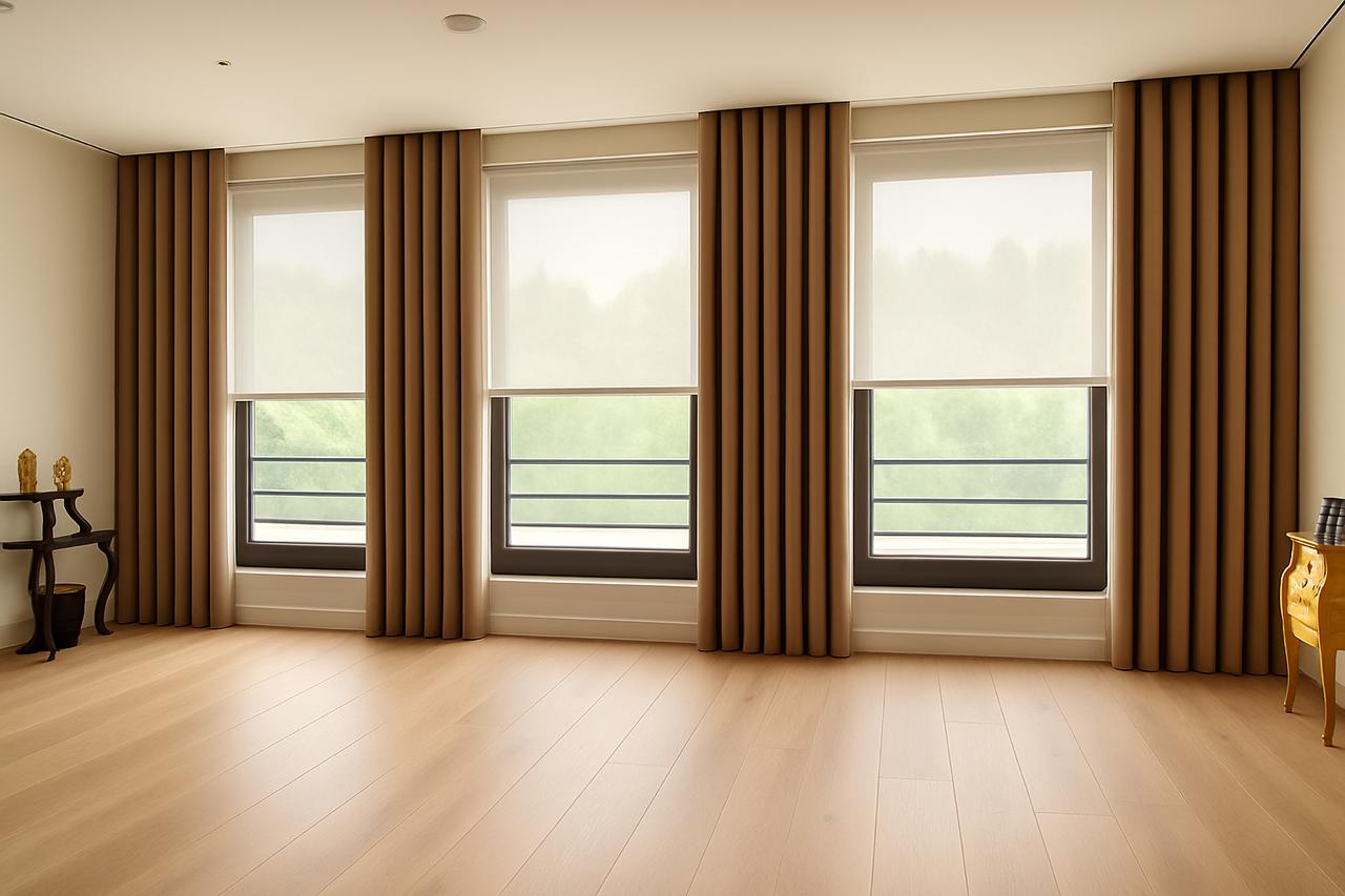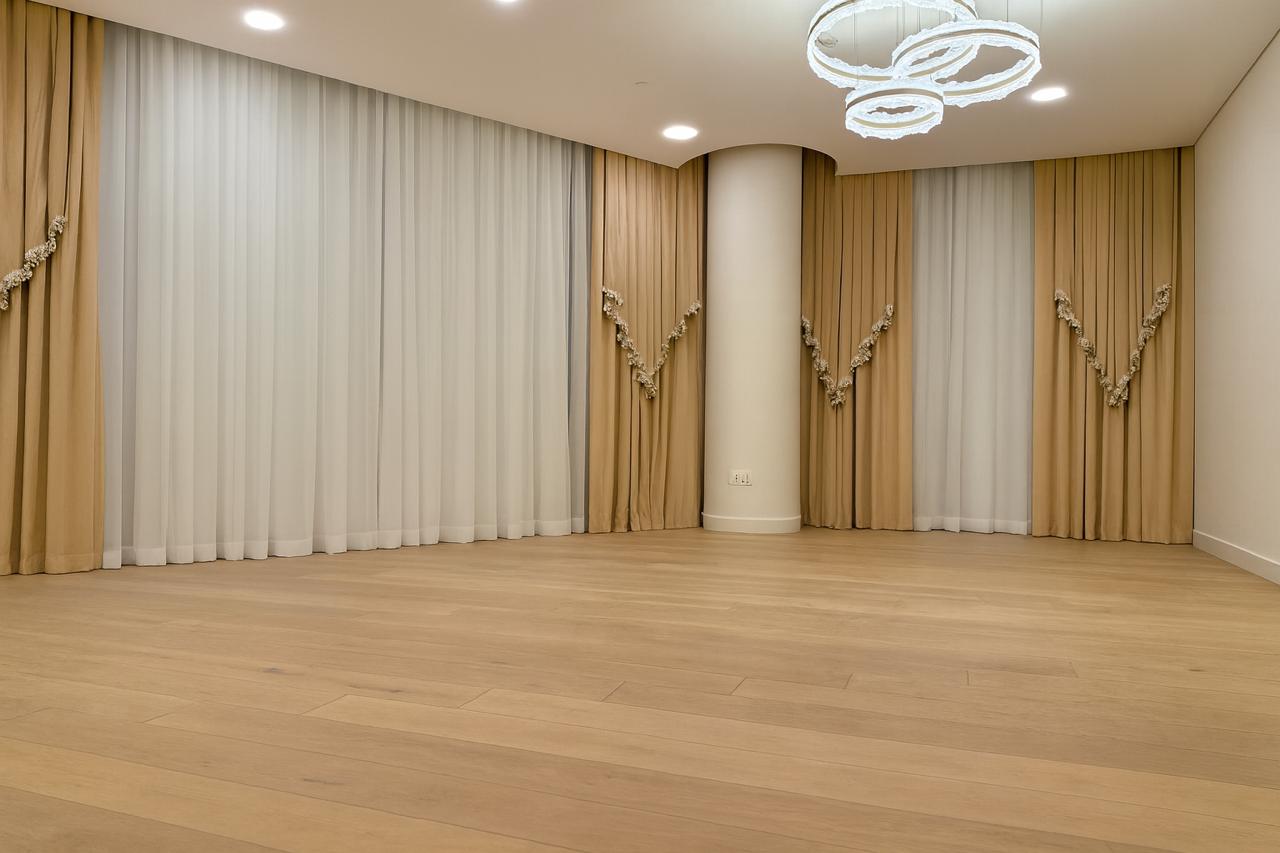 Motorized roller blinds bring elegance and comfort, letting natural light flow while maintaining privacy. Combined with the modern, stylish furniture, the space feels bright, inviting, and perfectly balanced